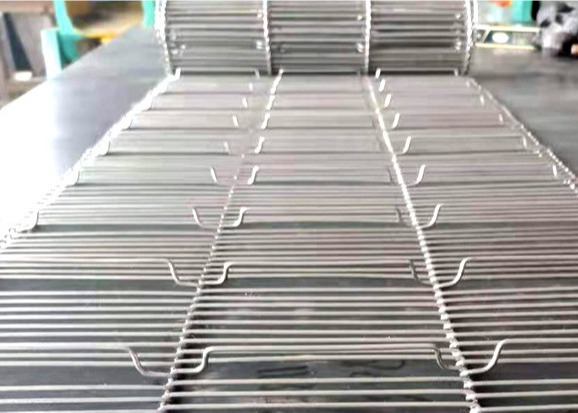 Flat flex mesh conveyor belt is made of SUS304 / 316 wire material, formed by mold pressing, normally driven by stainless steel or nylon sprockets, or by roller chains at two sides under special applications. The width is from 150mm to 6000mm. It can be used for both straight running and turning conveyors.